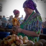 Non posso fare a meno di notare che la maggioranza dei commercianti di Samarcanda sono donne. E’ decisamente un mercato di venditrici. A pensarci bene era così anche a Bukhara dove ho notato che anche alcuni lavori, come la manutenzione delle aiuole e dei giardini, sono affidati alle donne, infagottate all’inverosimile per proteggersi dal sole e dalla polvere.
